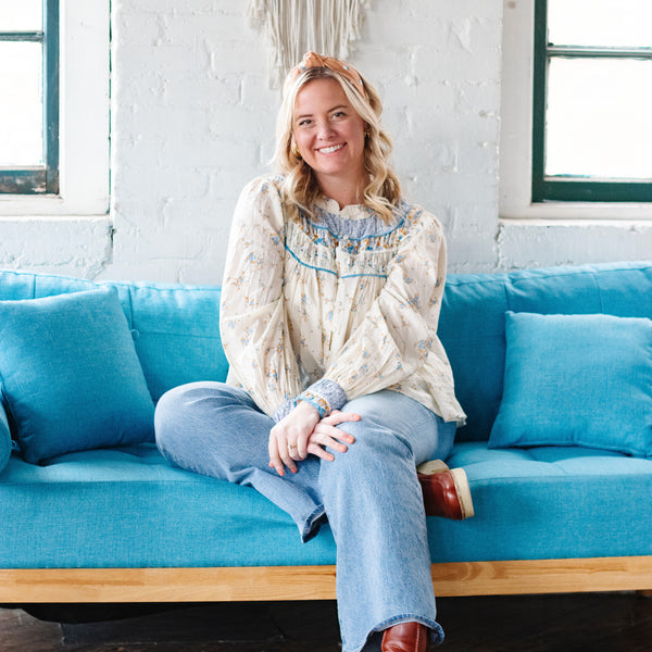 This happy, floral block print features white flowers and green/blue leaves, against a pretty neutral clay color background. The Marigold is perfect for spring, all the way through fall!
